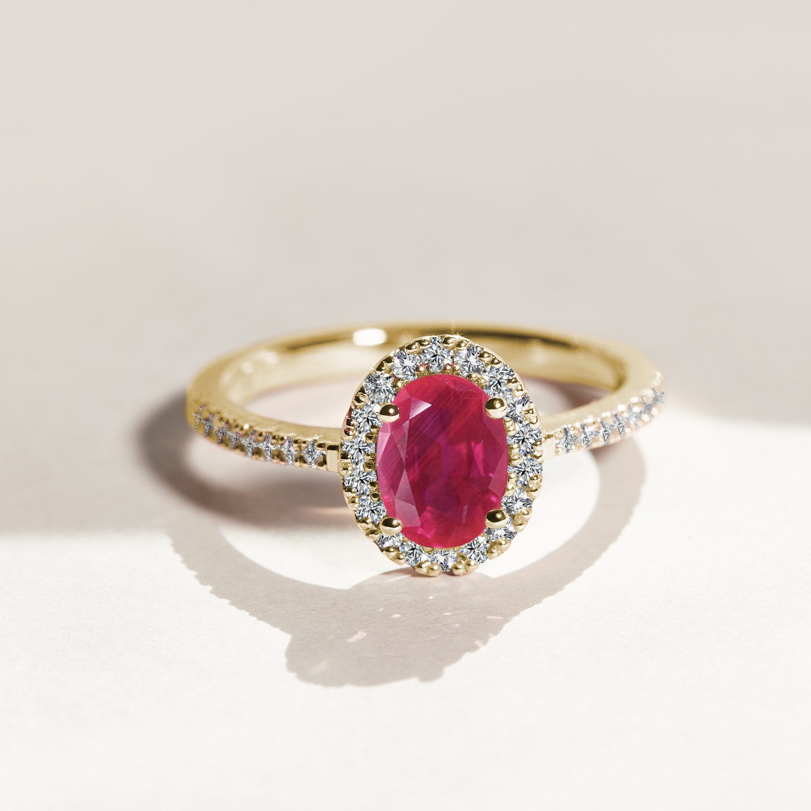 Rubiny sprawiają wyjątkowo ciepłe wrażenie, zwłaszcza gdy są osadzone w żółtym złocie. Natomiast w białym złocie ich kolor zyskuje wyraźny kontrast i głębię. Wyjątkowym królewskim połączeniem jest rubin otoczony czystymi diamentami. Biżuteria z rubinami ma różne formy – od figlarnych serduszek po olśniewające klejnoty – ale zawsze emanuje elegancją, jaką osiągają tylko kamienie szlachetne tzw. wielkiej trójki.