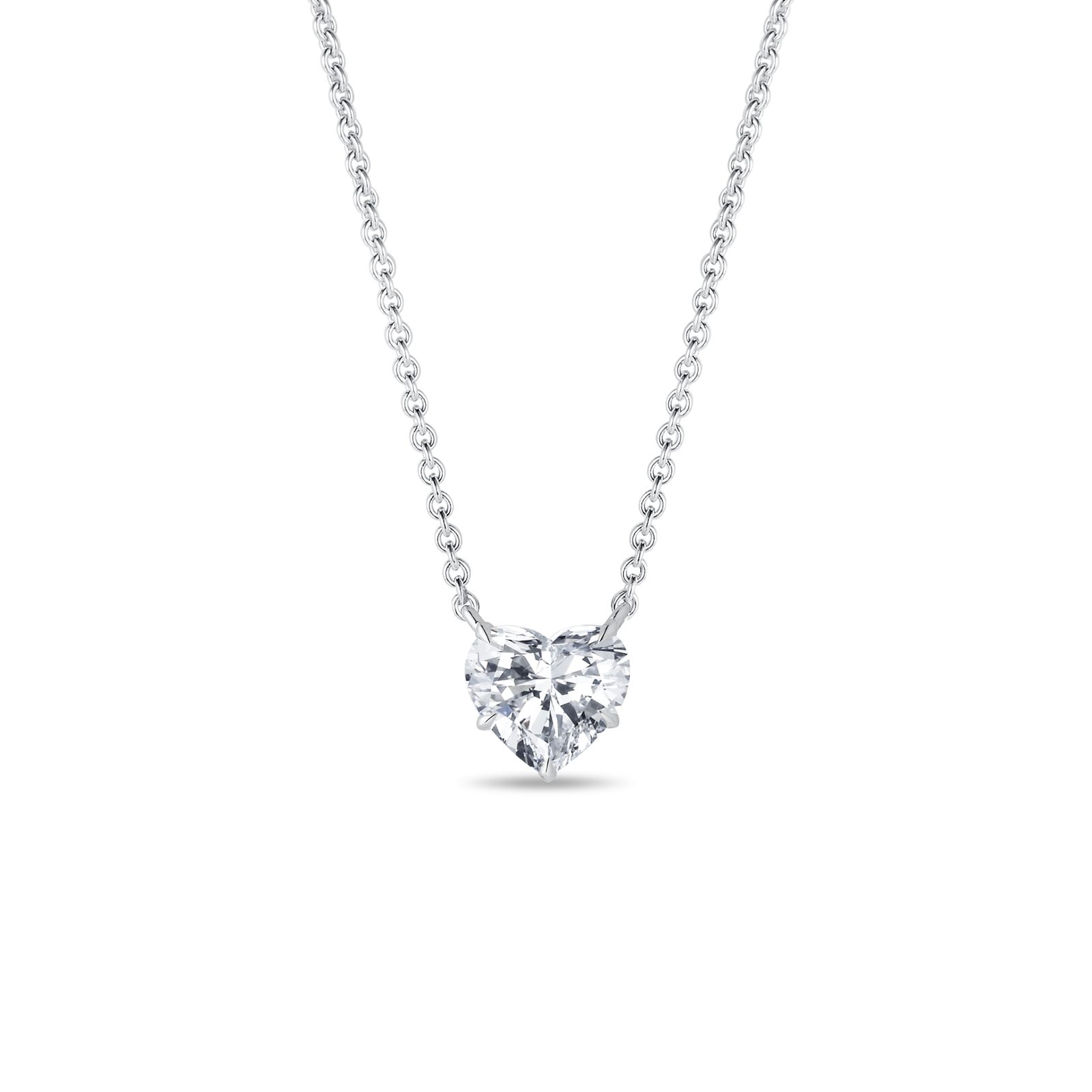 Diament w kształcie serca o masie 1,0 kt, wyhodowany laboratoryjnie, jest mocno osadzony na delikatnym łańcuszku z 14 kt białego złota. Zachwyca czystym blaskiem i eleganckim wyglądem. Dzięki prostemu designowi pięknie prezentuje się na dekolcie i łatwo komponuje się z inną biżuterią. Doskonale sprawdzi się jako delikatny, ale wyrazisty dodatek na wyjątkowe okazje i na co dzień.