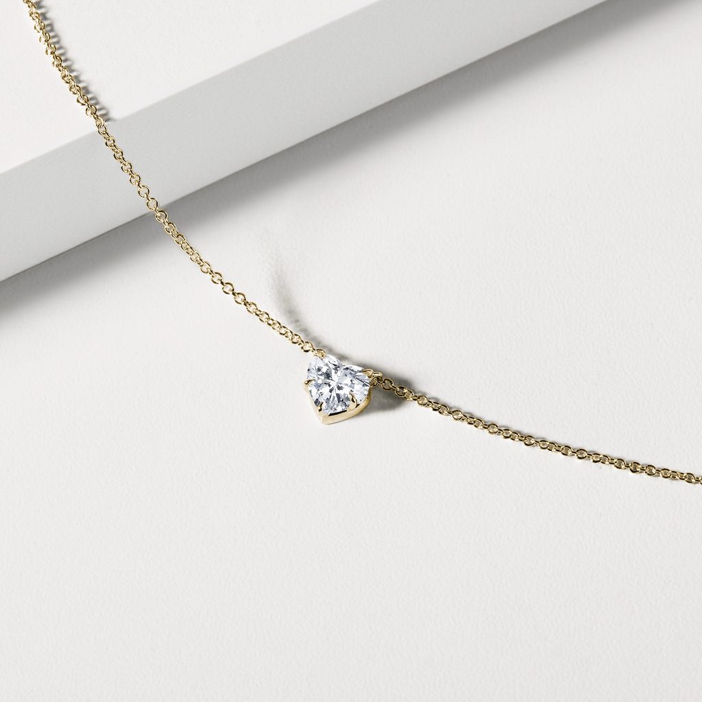 Diament w kształcie serca o masie 1,0 kt, wyhodowany laboratoryjnie, jest mocno osadzony na delikatnym łańcuszku z 14 kt żółtego złota. Zachwyca czystym blaskiem i eleganckim wyglądem. Dzięki prostemu designowi pięknie prezentuje się na dekolcie i łatwo komponuje się z inną biżuterią. Doskonale sprawdzi się jako delikatny, ale wyrazisty dodatek na wyjątkowe okazje i na co dzień.
