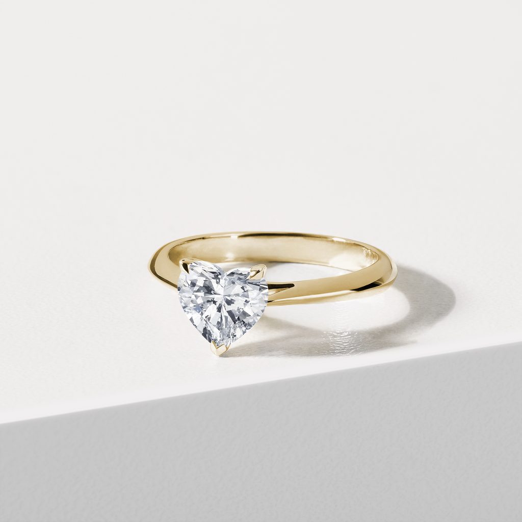 Pierścionek z 1,0 kt diamentem laboratoryjnym w kształcie serca w żółtym złocie