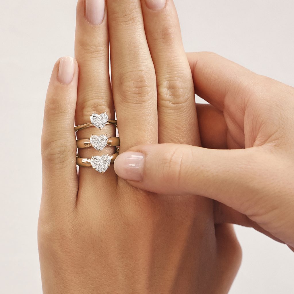 Pierścionek z różowego złota z laboratoryjnym diamentem w kształcie serca