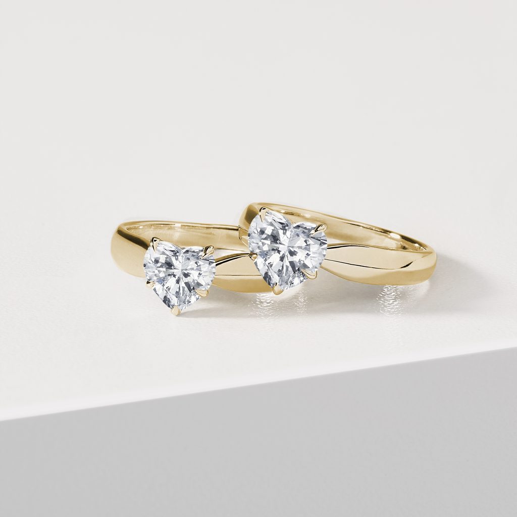Pierścionek z żółtego złota z laboratoryjnym diamentem sercem