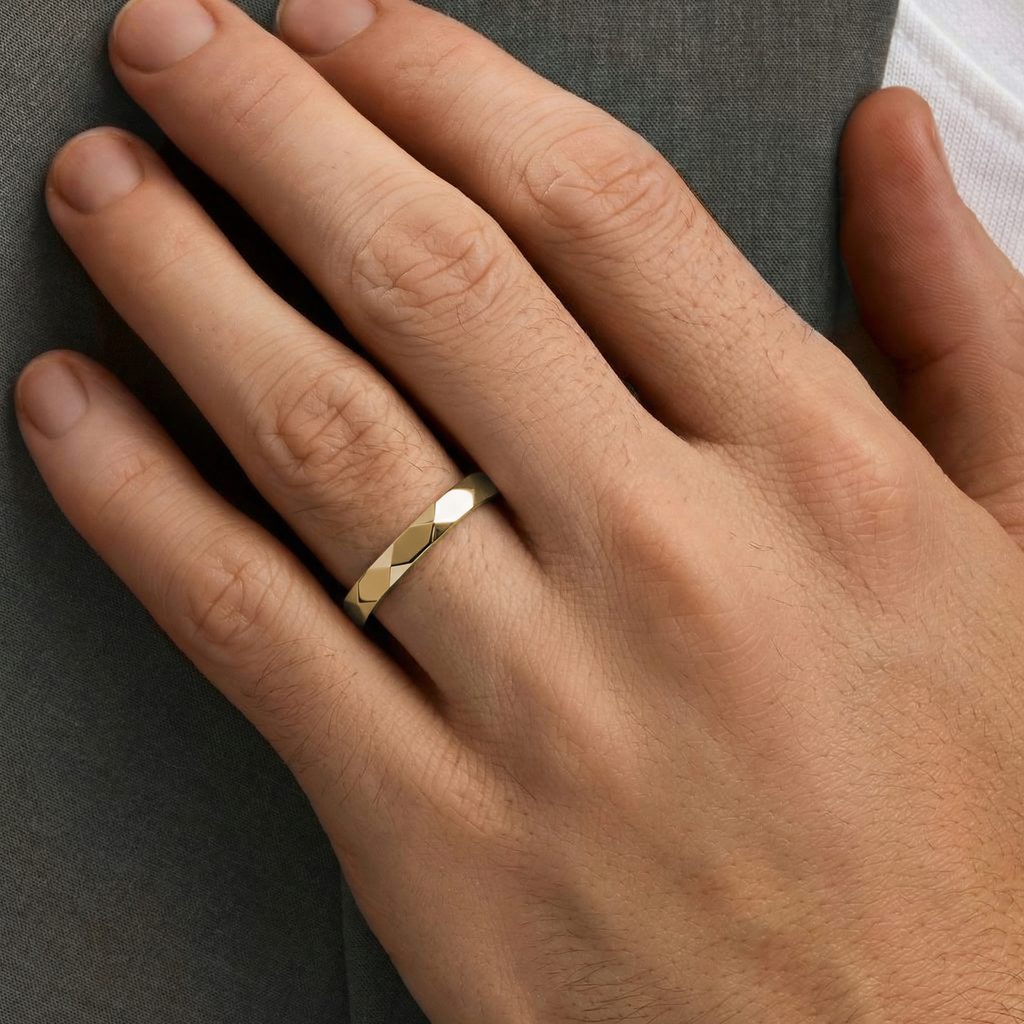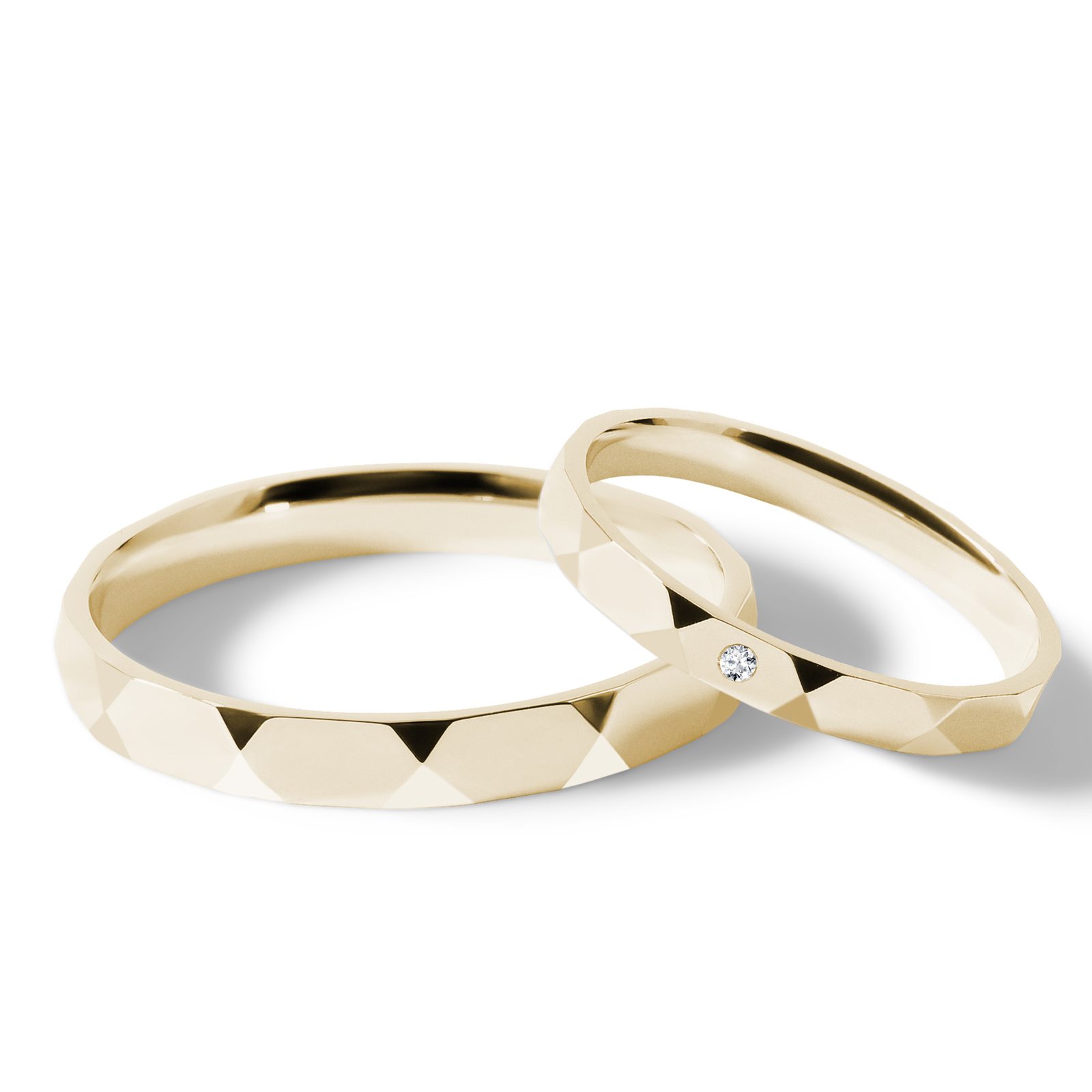 Komplet fasetowanych obrączek z żółtego złota